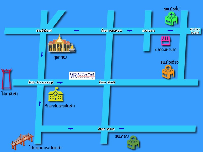 วี. อาร์. สหบัญชีกรุ๊ป ตั้งอยู่ริมถนนใหญ่ใจกลางเมือง และมีที่จอดรถสะดวกสบาย